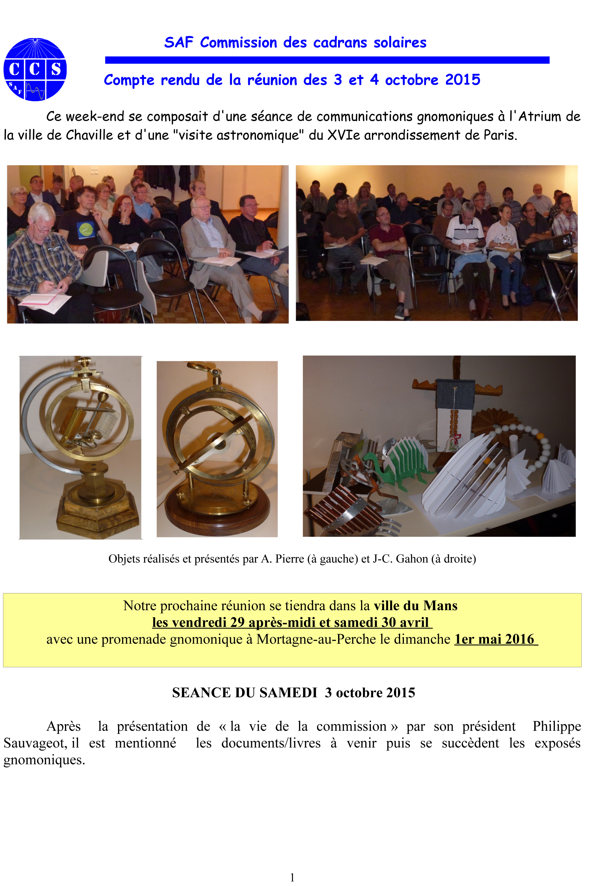 3 & 4 octobre 2015 (cliquer pour lire les documents)